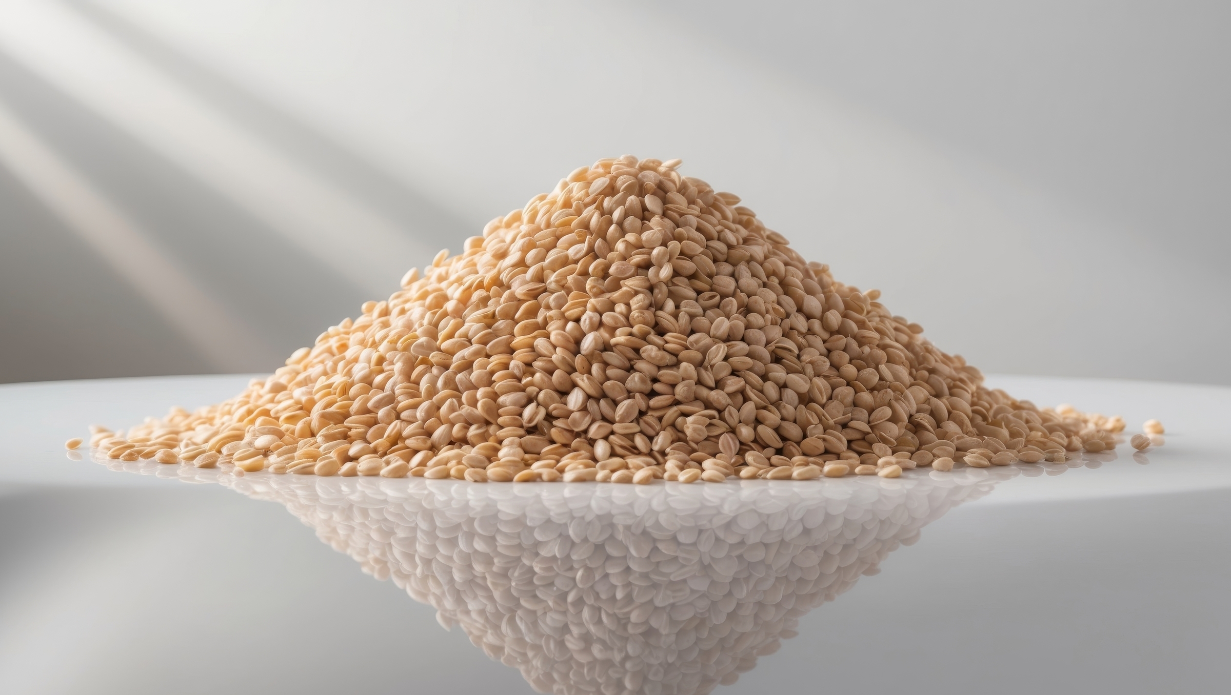 Hulled sesame seeds are sesame seeds that have had their outer husk or shell removed, resulting in a softer texture and a lighter color, usually creamy white or pale beige. These seeds are small, oval-shaped, and have a mild, nutty flavor that makes them a popular ingredient in many cuisines around the world. Removing the hull reduces the bitterness sometimes found in unhulled seeds and enhances their taste and digestibility.