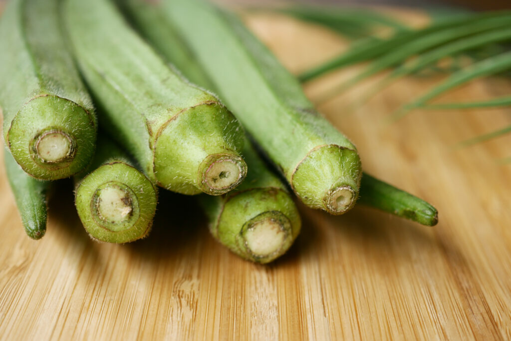 Lady’s Finger, also known as okra, is a green, finger-shaped vegetable popular in many cuisines, especially in Indian, Middle Eastern, and Southern American dishes. It has a slightly crisp texture and a mild, slightly grassy flavor. Lady’s Finger is often used in stews, curries, and fried preparations. One unique feature of this vegetable is its mucilaginous or slimy texture when cooked, which helps to thicken soups and stews.