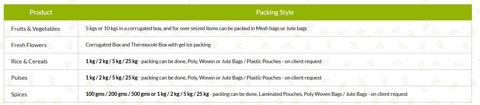 * Palletizing is done for sea shipment on both LCL & FCL.